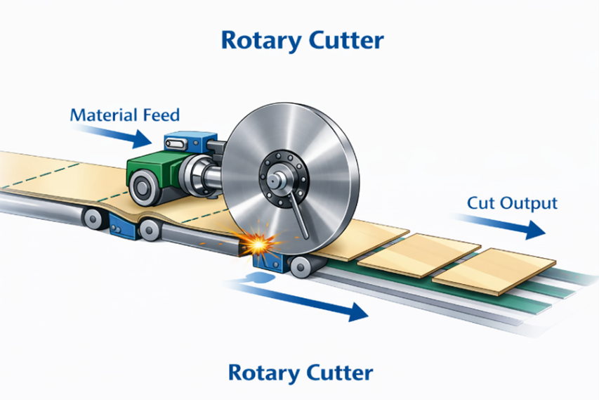 Rotary Cutter نوعی سیستم برش دوار است که معمولاً شامل تیغه گردان می‌باشد و برای برش پیوسته فیلم، کاغذ، فویل و مواد رول‌شونده استفاده می‌شود.